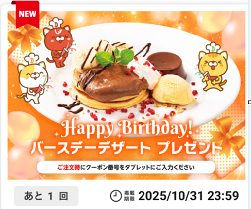 バースデークーポンとなると