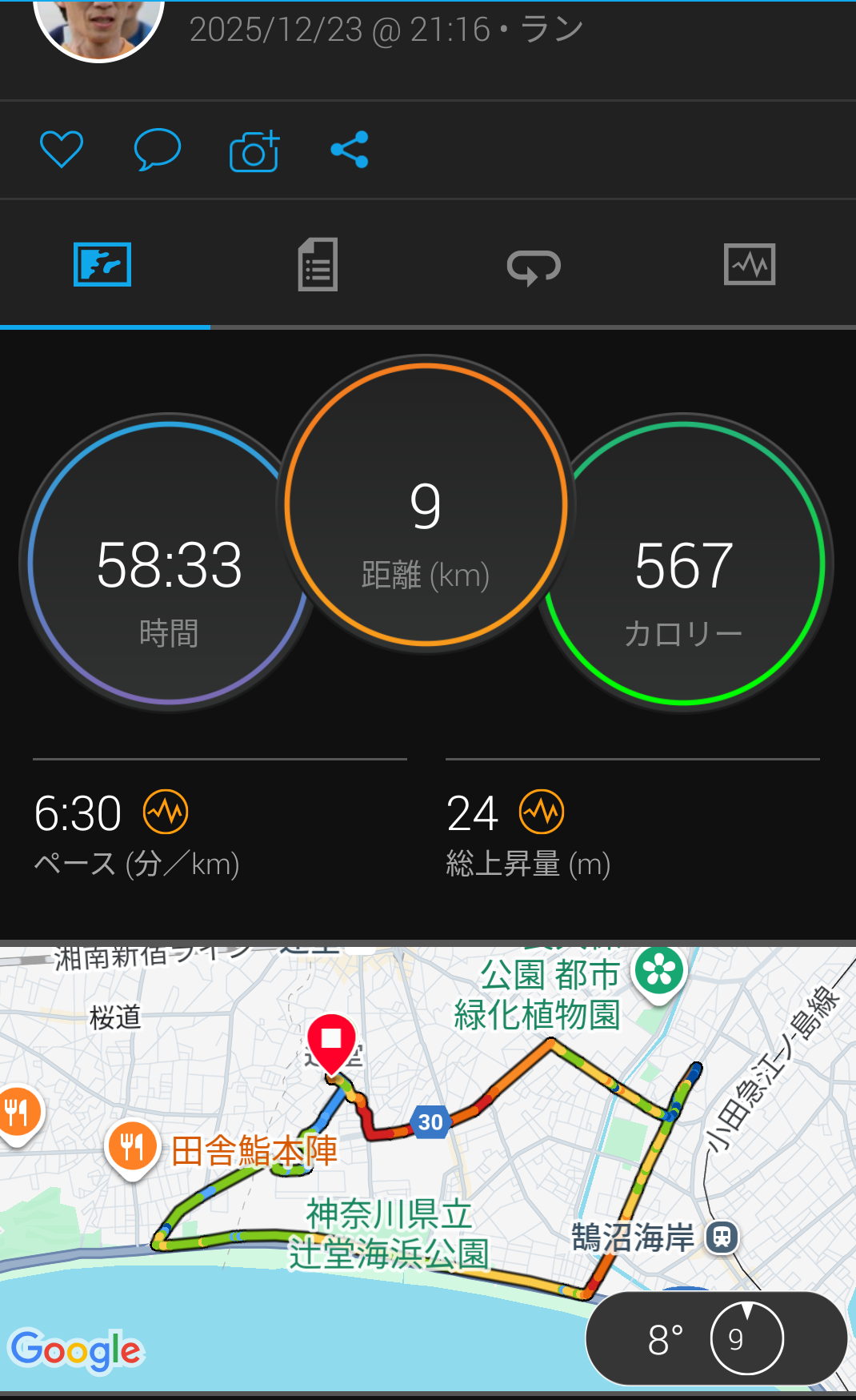 昨日は9km