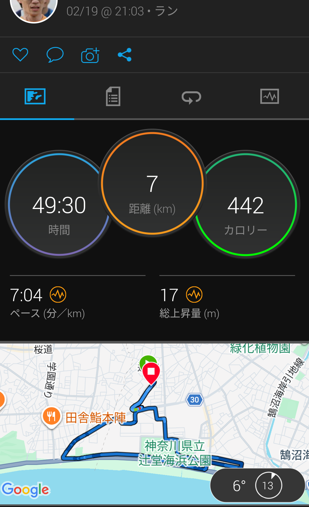 今日 7.0km 49分台