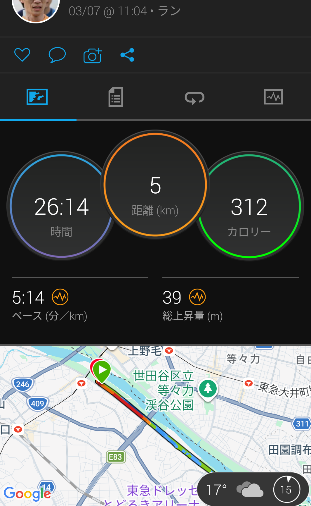 家の前からスタート ε=┌( ̄ー ̄)┘