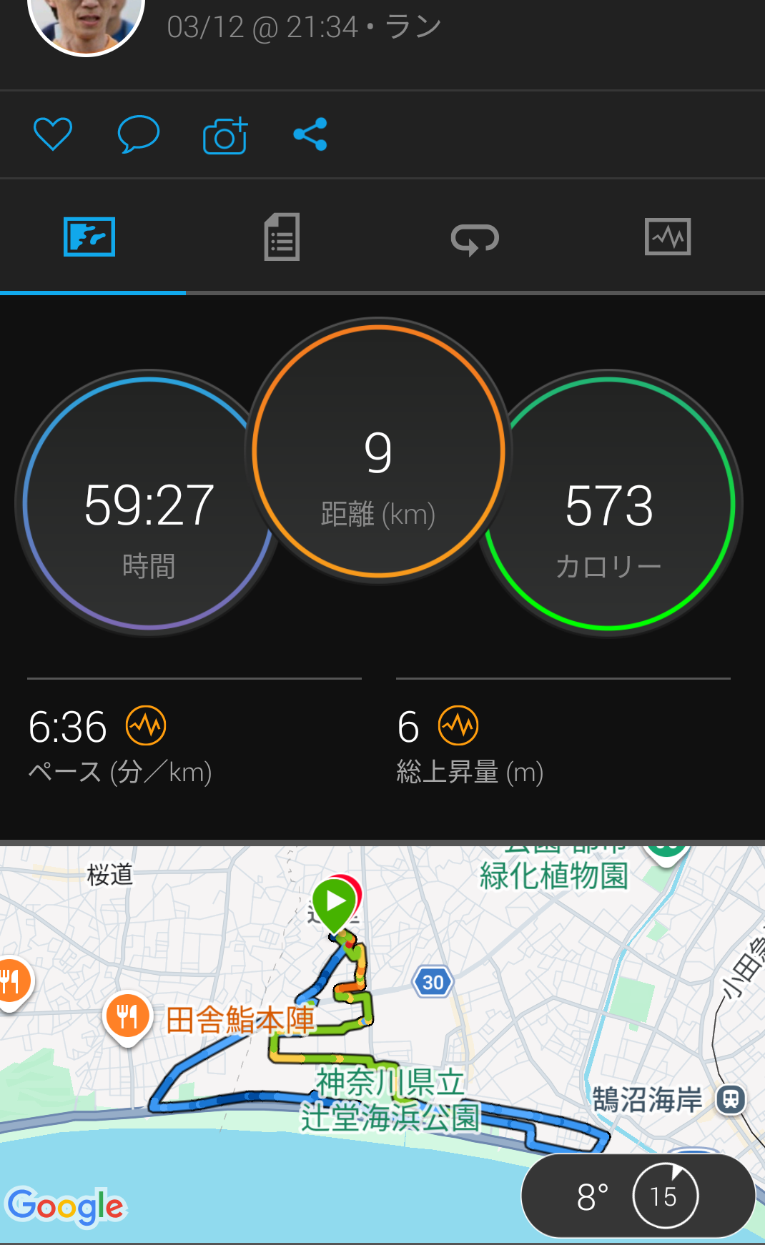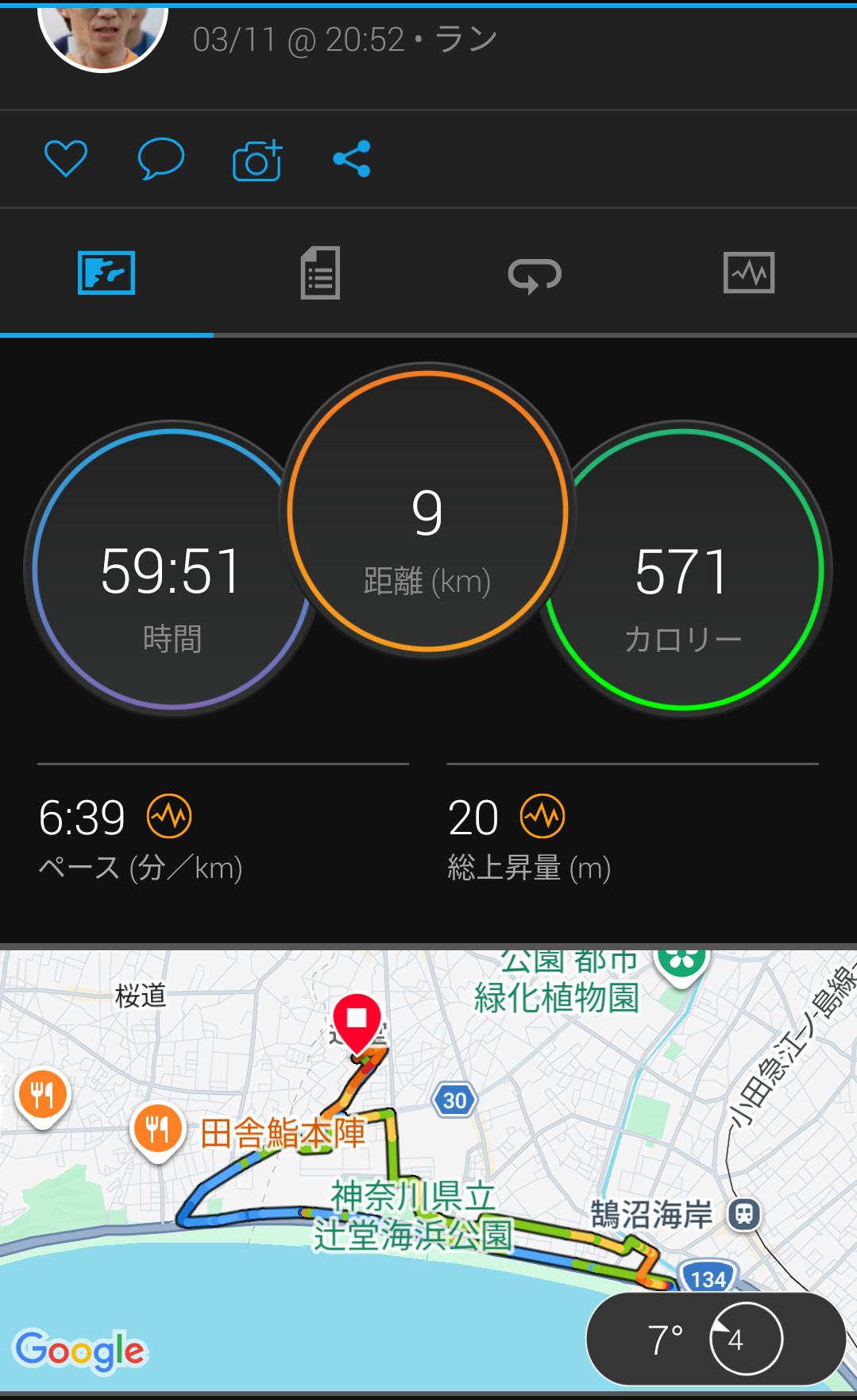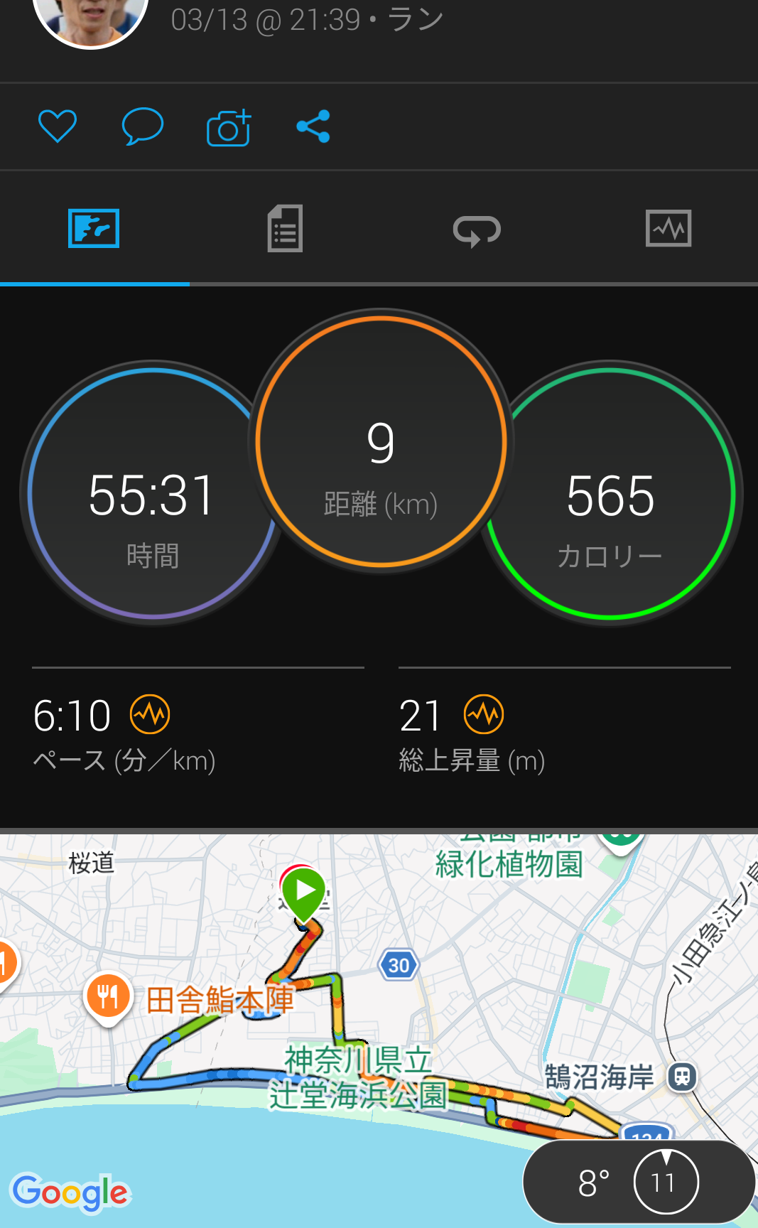 9kmで1時間切りなんて